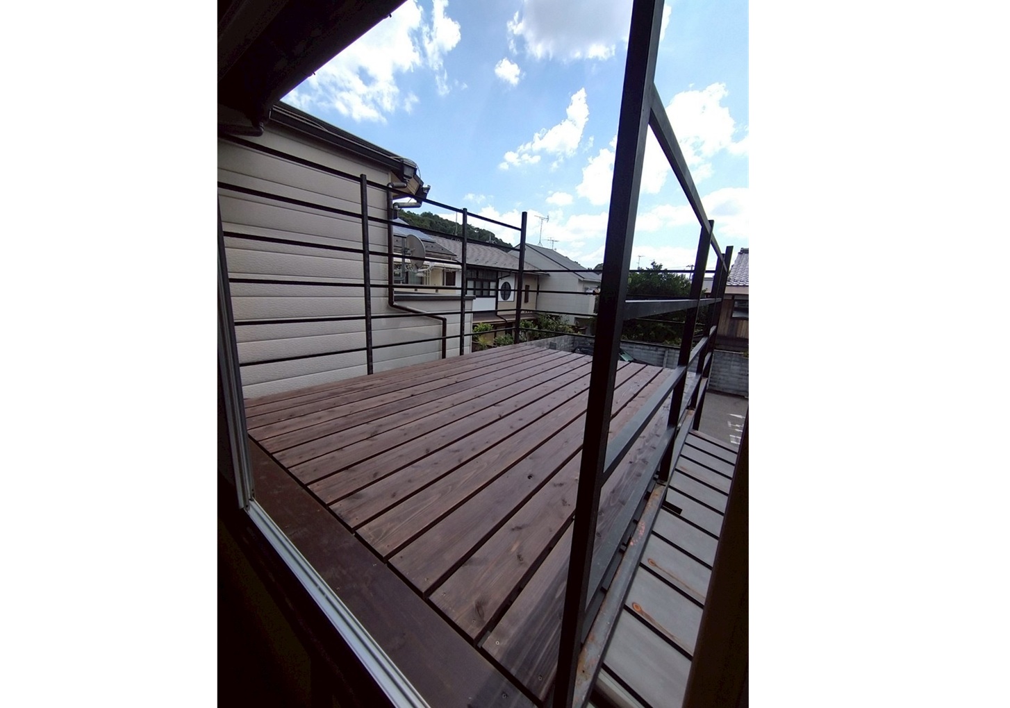 南向きの14帖洋間からは心地よい採光が差し込み、さらに大型バルコニーも備え、